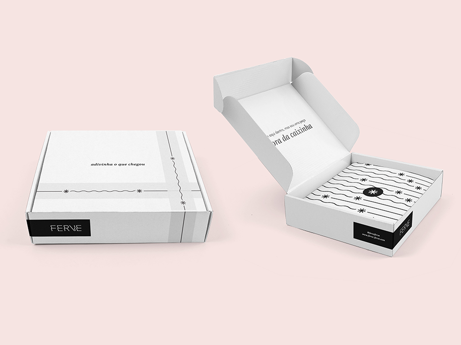 A Ferve nos passou a tarefa de desenvolver suas caixas de e-commerce, em cima de uma identidade visual já existente. Criamos os desenhos de mulheres com diversas características diferentes vestindo peças semelhantes aos produtos da marca, no pole dance - para traduzir a ousadia e feminilidade da marca - além da comunicação reforçando valores de auto estima e o conceito de peças que são totalmente “fora da caixa”.