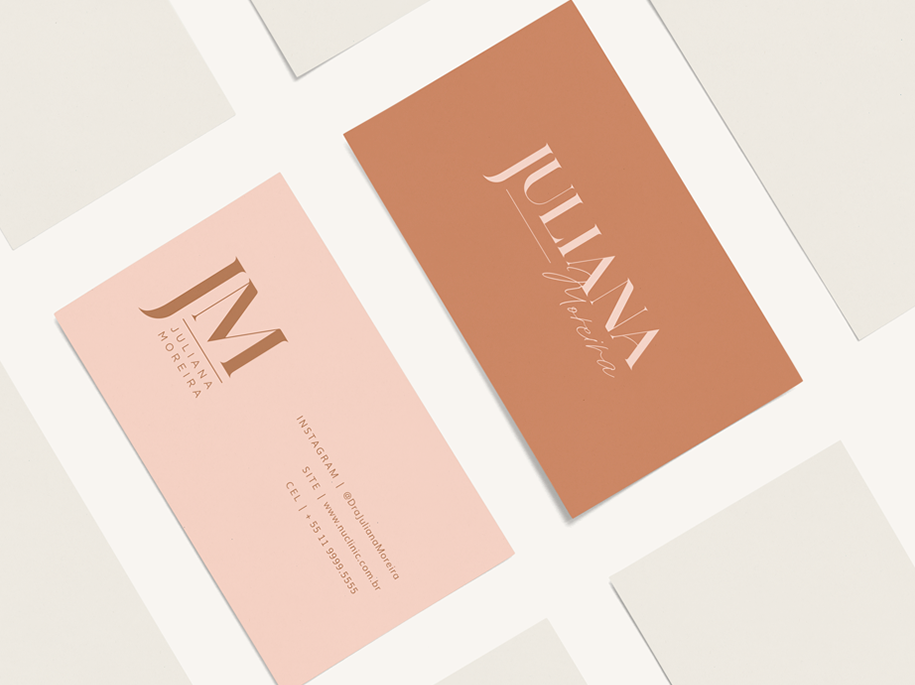 A médica com dupla especialização em dermatologia e ginecologia e também sócia proprietária da NUCLINIC nos solicitou para desenvolver sua identidade visual e itens de papelaria.