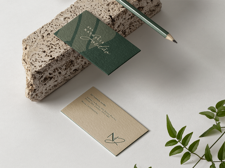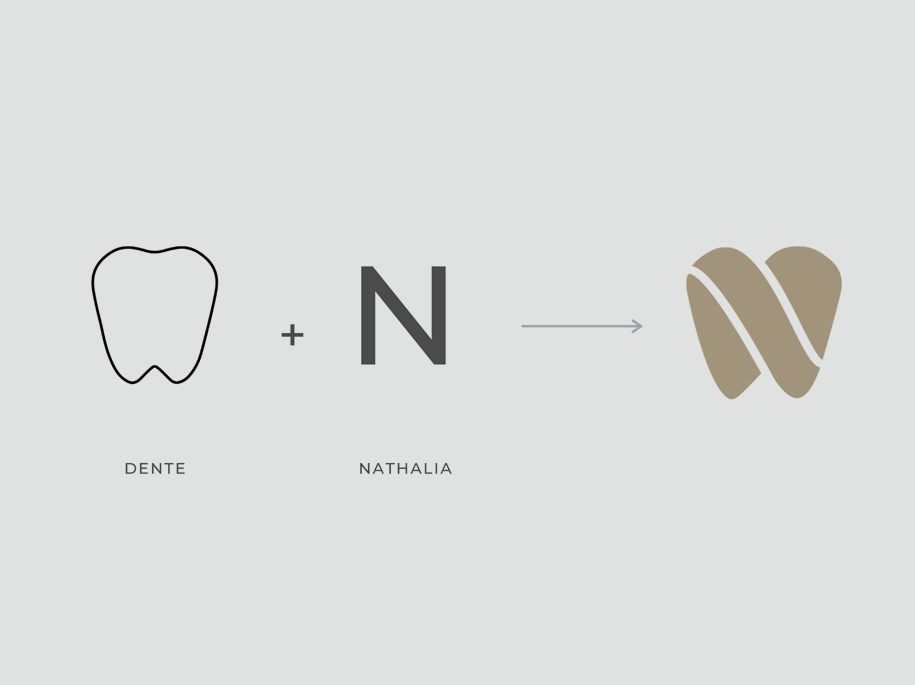 Unimos duas tipografias bem diferentes - uma mais sóbria e outra manuscrita - para criar essa identidade, e trabalhamos a forma do N de Nathalia como um símbolo de dente para usar em diversas formas de assinaturas.