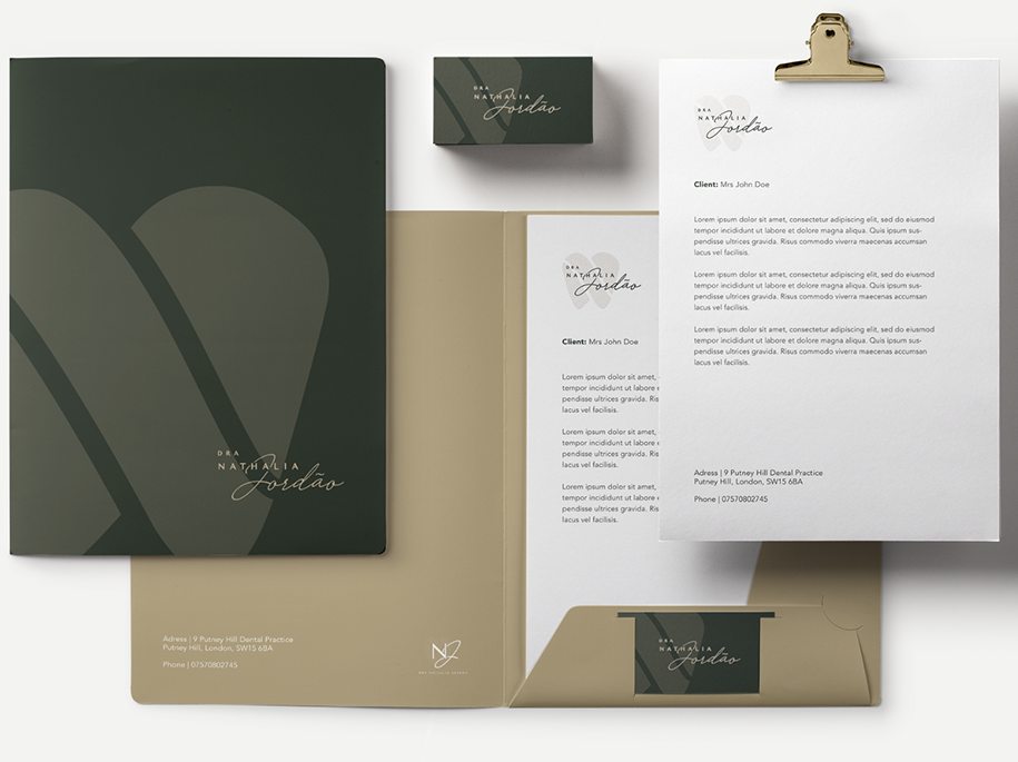 A dentista Nathalia Jordão mora em Londres, e nos procurou para trabalhar sua identidade visual e reforçar seu profissionalismo em seu novo local de trabalho e região.